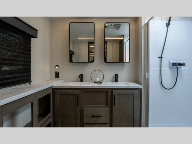 Forest River Cherokee Arctic Wolf Suite fifth wheel 3950SUITE highlights: Bath ... more about Cherokee Arctic Wolf Suite 3950SUITE