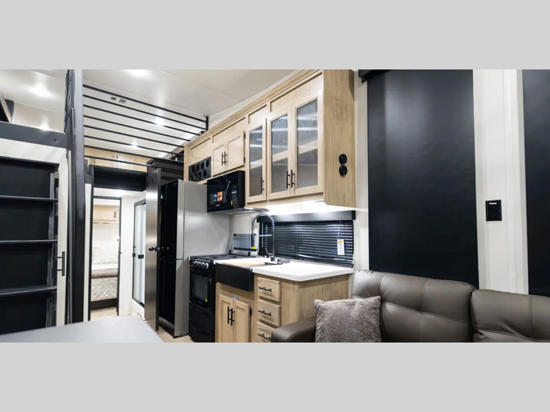 You will always find a comfortable place to relax with friends and family, cook with the full kitchen amenities, and clean up daily in the bathroom. There are also cozy sleeping spaces, plenty of storage options, and durable construction materials so you can enjoy your trailer for years to come!