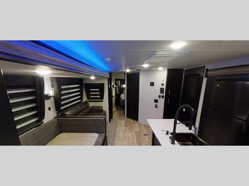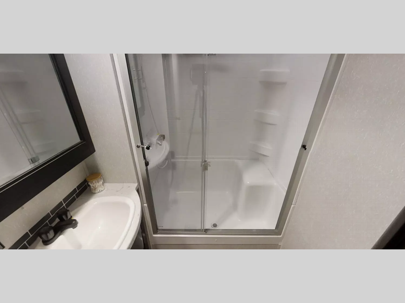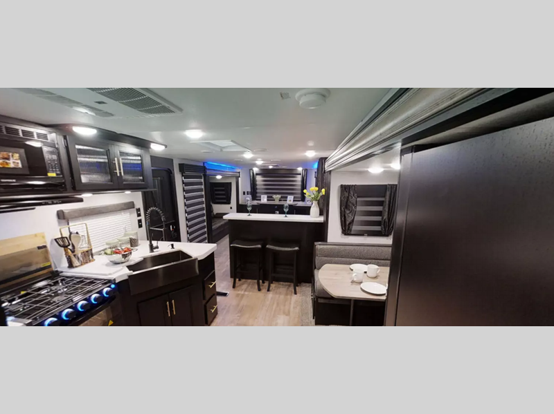 Sleeps 4 Slides 2 Length 38 ft 6 in Ext Width 8 ft Ext Height 11 ft 1 in Hitch Weight 1105 lbs GVWR 11305 lbs Dry Weight 7998 lbs Cargo Capacity 3307 lbs Fresh Water Capacity 40 gals Grey Water Capacity 38 gals Black Water Capacity 38 gals Available Beds Queen Refrigerator Type 12V Residential Refrigerator Size 10 cu ft Cooktop Burners 3 Number of Awnings 1 Water Heater Type On Demand Tankless AC BTU 15000 btu Awning Info 15' Power Axle Count 2 Shower Type Neo-Angled Similar Floorplans