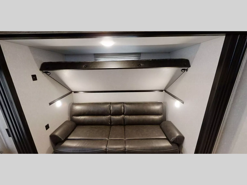 Sleeps 10 Slides 3 Length 37 ft 3 in Ext Width 8 ft Ext Height 11 ft 1 in Hitch Weight 1015 lbs GVWR 11215 lbs Dry Weight 8688 lbs Cargo Capacity 2527 lbs Fresh Water Capacity 44 gals Grey Water Capacity 38 gals Black Water Capacity 28 gals Number Of Bunks 3 Available Beds Queen Refrigerator Type 12V Residential Refrigerator Size 10 cu ft Cooktop Burners 3 Number of Awnings 1 Water Heater Type On Demand Tankless AC BTU 15000 btu Awning Info 15' Power Axle Count 2 Shower Type Radius Similar Floorplans