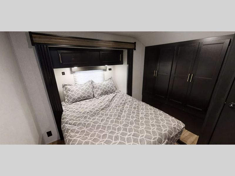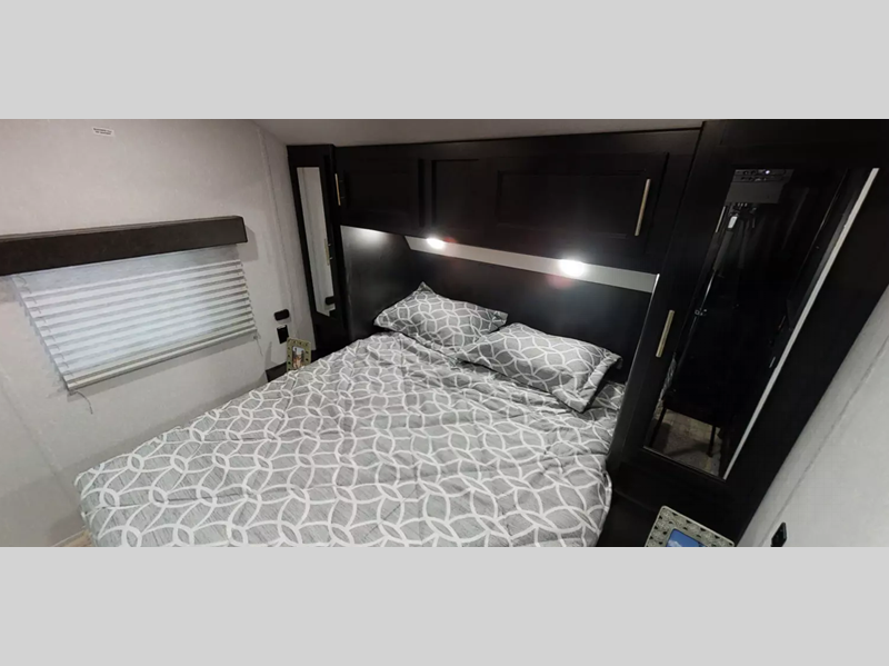 Sleeps 5 Slides 2 Length 33 ft 2 in Ext Width 8 ft Ext Height 11 ft 1 in Hitch Weight 895 lbs GVWR 9985 lbs Dry Weight 7143 lbs Cargo Capacity 2842 lbs Fresh Water Capacity 40 gals Grey Water Capacity 38 gals Black Water Capacity 38 gals Available Beds Queen Refrigerator Type 12V Residential Refrigerator Size 10 cu ft Cooktop Burners 3 Number of Awnings 1 Water Heater Type On Demand Tankless AC BTU 15000 btu Awning Info 21' Power Axle Count 2 Shower Type Radius Similar Floorplans