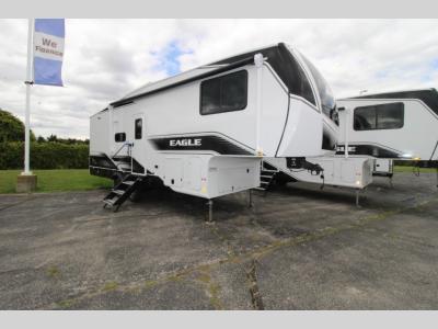 The Eagle HT 26REC features a rear entertainment layout that creates a comfortable and inviting living area, perfect for relaxing after a day outdoors. Plush seating, large windows, and a spacious dinette provide a bright and welcoming atmosphere for meals, movie nights, or entertaining guests. The well-designed kitchen offers generous counter space, quality cabinetry, and practical storage to support longer stays at the campground. A private front bedroom delivers a quiet retreat with ample storage, while the full bathroom adds everyday convenience. Built with lightweight construction and premium finishes, this travel trailer balances towability with upscale comfort.