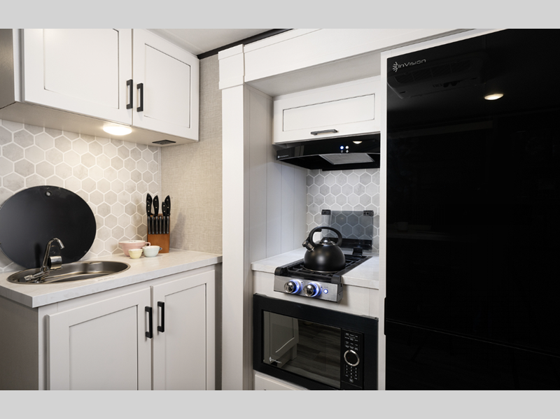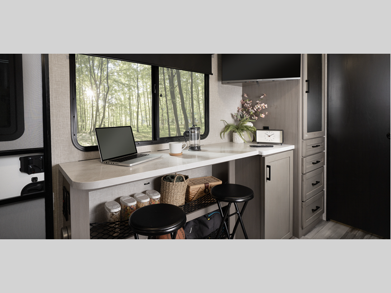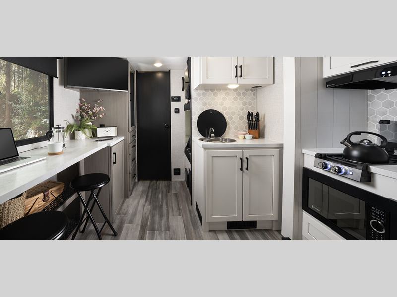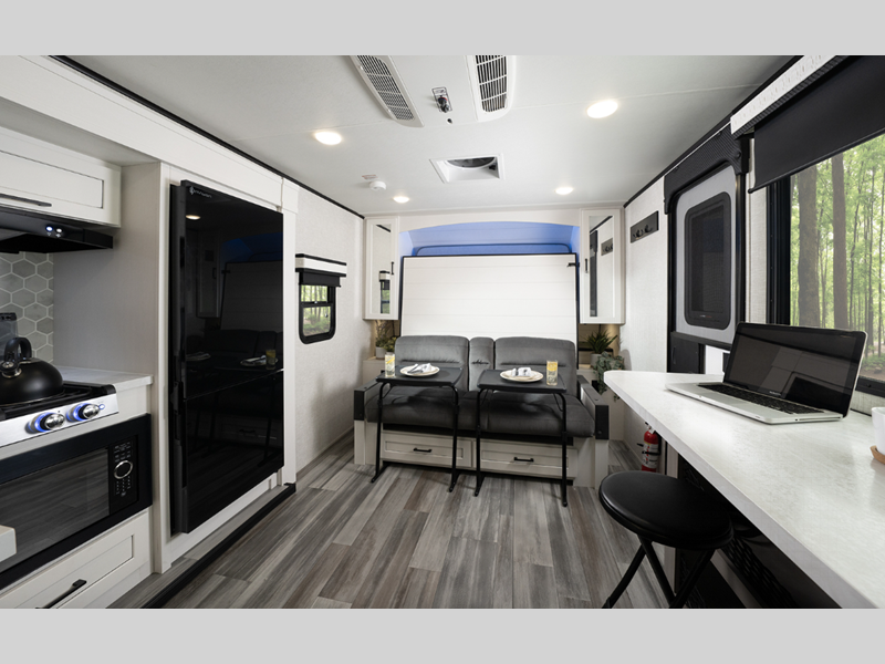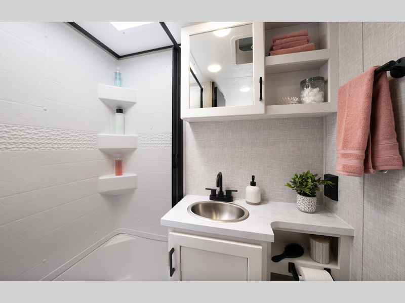 Additional stand-out features include a Rock Solid stabilizer system for hassle-free set up, a tankless water heater, and a Magnum Truss roof system, tested to withstand 4,500 lbs., 50% more than the competition! Inside, you'll be met with residential-style seamless countertops throughout, spacious handcrafted, hardwood door/drawer fronts, and residential vinyl flooring throughout that will be easy to keep clean.