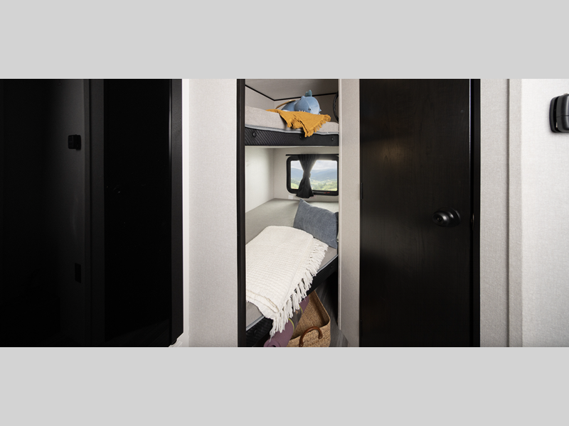 Sleeps 8 Slides 1 Length 30 ft 10 in Ext Width 8 ft Ext Height 11 ft Int Height 6 ft 9 in Interior Color Country Linen Hitch Weight 675 lbs GVWR 7900 lbs Dry Weight 6030 lbs Cargo Capacity 1870 lbs Fresh Water Capacity 52 gals Grey Water Capacity 78 gals Black Water Capacity 39 gals Tire Size ST205/75R14'D Furnace BTU 25000 btu Number Of Bunks 2 Available Beds Queen Refrigerator Type 12V Refrigerator Size 8 cu ft Cooktop Burners 3 Number of Awnings 1 Water Heater Type On Demand Tankless AC BTU 13500 btu Awning Info 16' Electric with LED Lights Axle Count 2 Shower Type Standard Electrical Service 30 amp Similar Floorplans