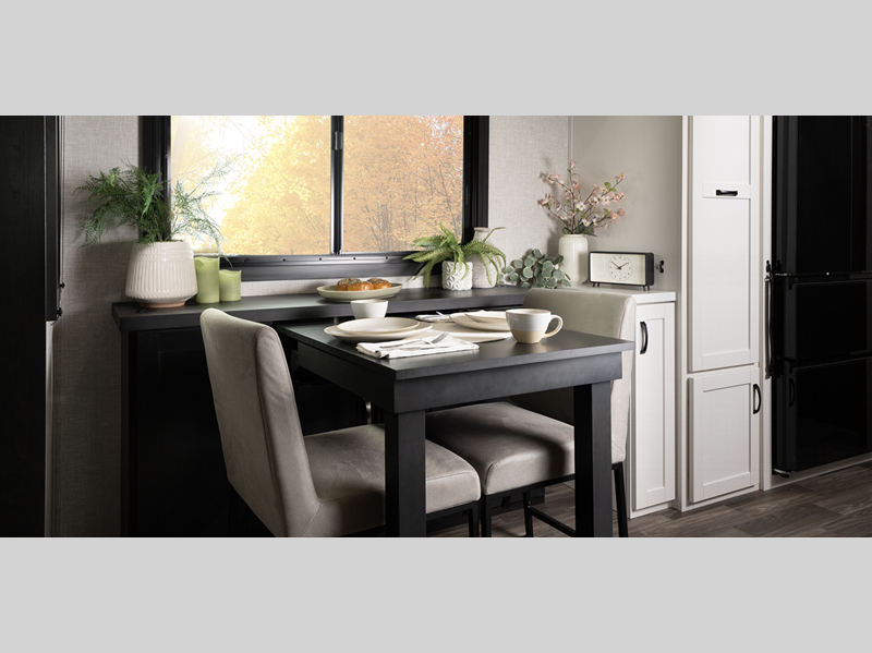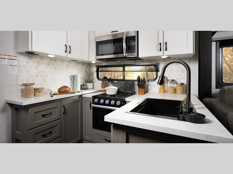 The Seismic toy haulers include a 4 Star Handling Package that features a Rota-flex king pin, 'H' rated Uniroyal tires, and Dexter axles with ABS and Tow Assist for smooth towing all the way to the campground. Step inside to find solid hardwood cabinet doors, easy to clean residential vinyl flooring made in the USA, and many more at-home comforts. These models also include convenient amenities, like the industry exclusive HELIX Cooling System, a Keyed-Alike lock system, and Climate Shield zero-degree tested weather protection.